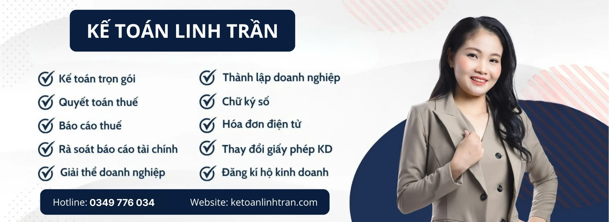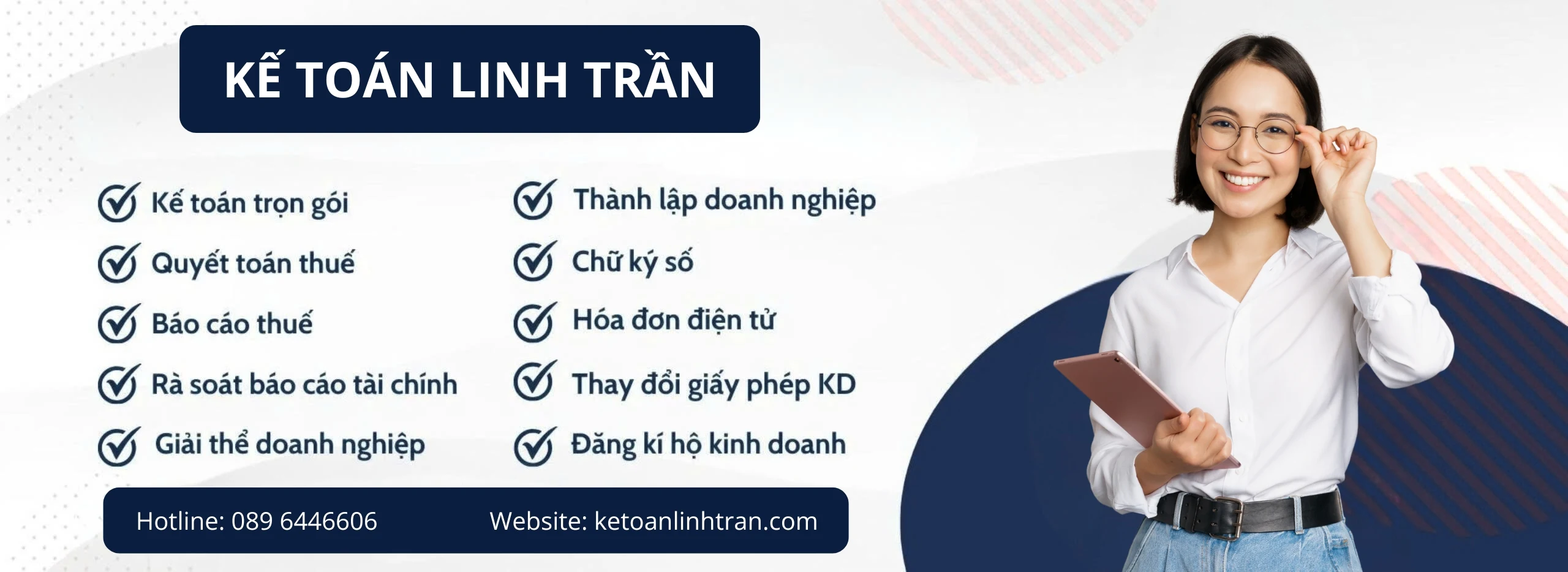 Với nhiều năm kinh nghiệm trong lĩnh vực kế toán và tài chính, Kế Toán Linh Trần cung cấp dịch vụ kế toán trọn gói chuyên nghiệp – uy tín – giá hợp lý, giúp doanh nghiệp giải quyết toàn bộ vấn đề về sổ sách và thuế.